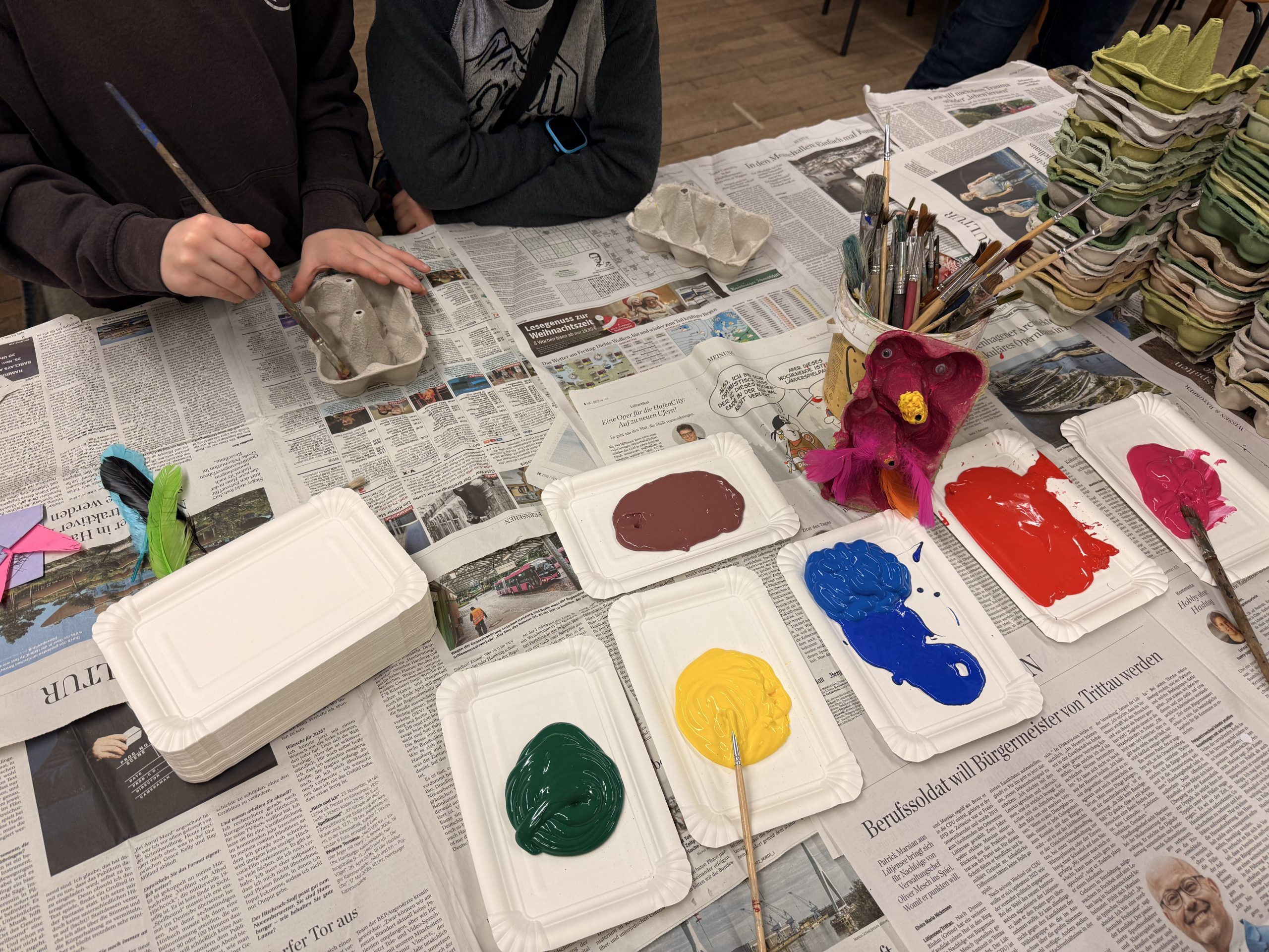 In der Uhrenhalle, in den Gängen, dem Atelier sowie in den geöffneten Klassenräumen der ersten Klassen und der Vorschulklassen herrschte ein munteres Gewimmel. Auch das Abenteuerangebot in der Turnhalle wurde begeistert angenommen. So konnten Kinder und Eltern einen lebendigen Eindruck von der Atmosphäre an unserer Schule gewinnen, während die Schulleitung und die Lehrkräfte bereitstanden, um Fragen zu beantworten.